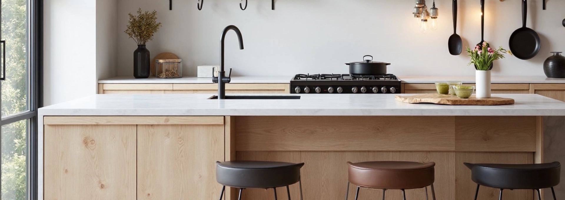 L’art de sublimer une cuisine minimaliste réside dans le choix de quelques pièces exceptionnelles qui allient beauté et fonctionnalité, créant ainsi des points d’intérêt sans encombrer l’espace.