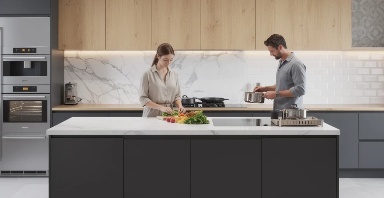 Îlot central en quartz silestone blanco norte pour optimiser l’ergonomie