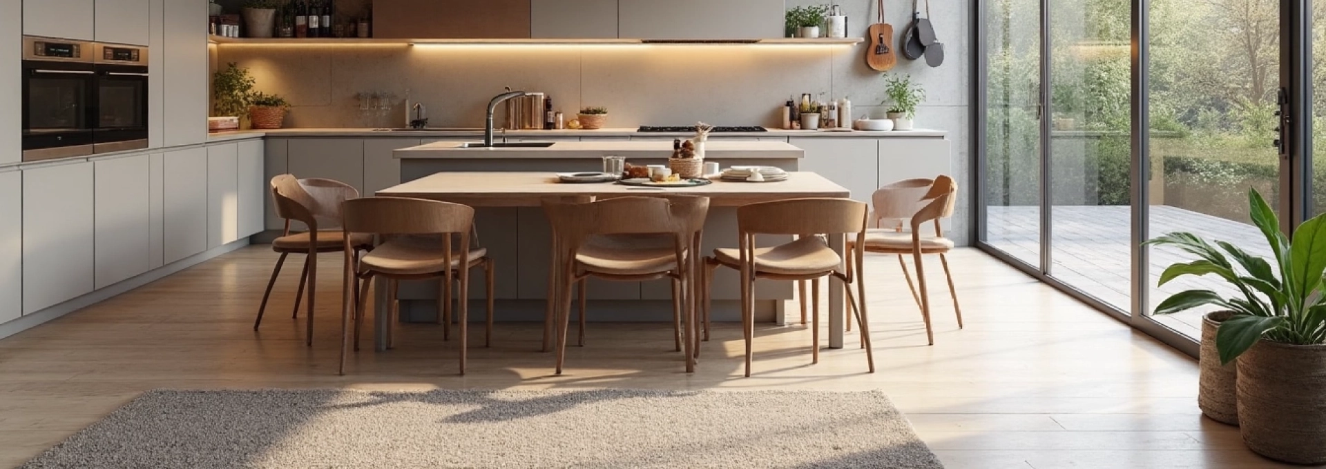 Un design réussi dans un espace cuisine-salon connecté allie fonctionnalité avancée et esthétique raffinée, créant un environnement où technologie et élégance coexistent harmonieusement.